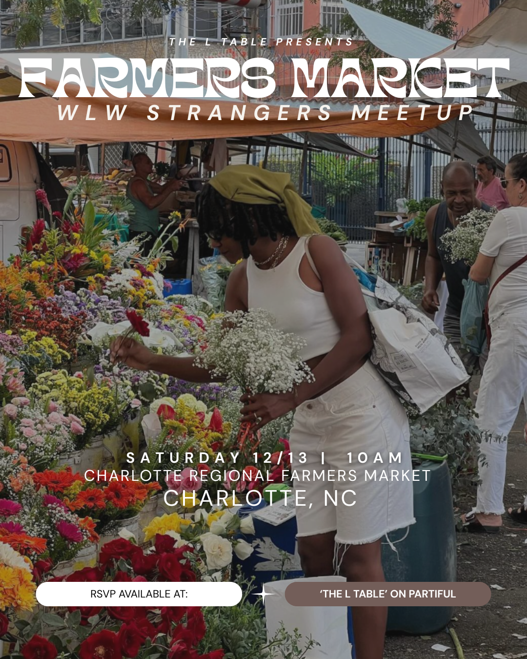 Join The L Table at the farmers market for a bright and welcoming WLW meetup — grab fresh finds, chat with queer women, and make new friends in a cozy, inclusive space.