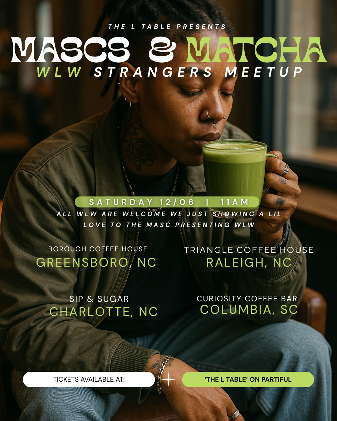 Meet us in four locations in North and South Carolina where we gather with all varieties of women who love women, but we’re especially showing love to our masc presenting women!