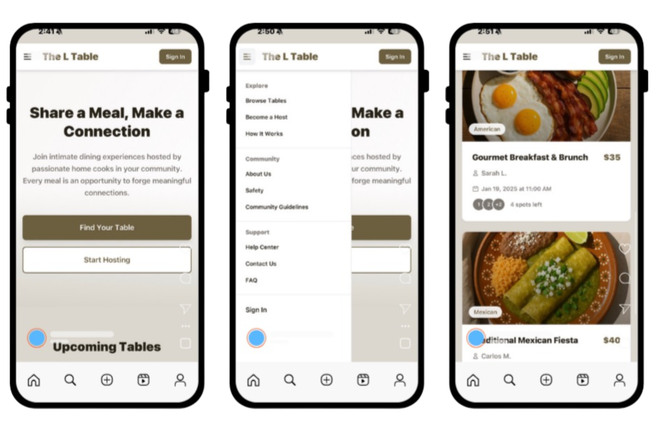 The L Table app begins with our community. As we develop the platform, we’re working closely with real users to shape an experience that reflects how we connect, gather, and grow together.